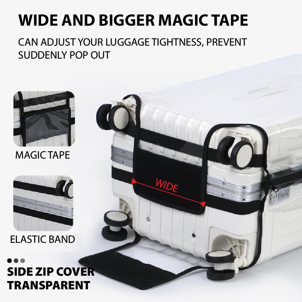 ⭐ Model, Premium zipper has 2 elastic band at bottom so it cover tight with the luggage, it can open the luggage without remove the luggage protector.